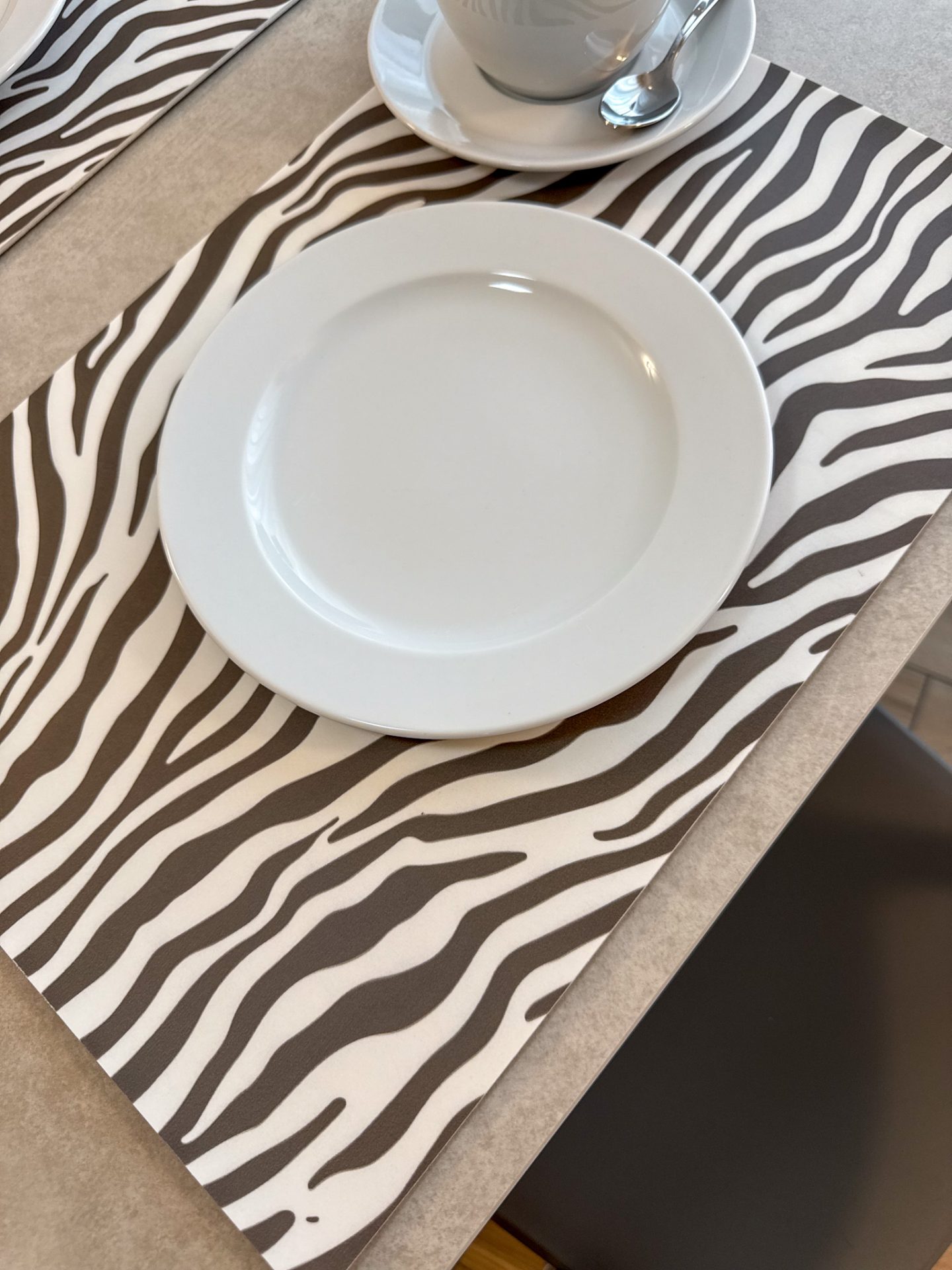 Le tovagliette Lauren aggiungono carattere alla tavola con un design contemporaneo e una stampa in alta qualità. Realizzate in PVC effetto vinile, sono pratiche, facili da pulire e perfette per accompagnare ogni momento della giornata, dalle colazioni al volo all’ora del tè.